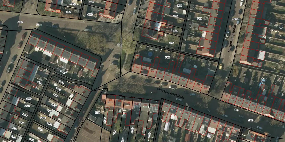 Maasbreesestraat 140 is gelegen op kadastraal perceel VLO00M7512. Deze kadastrale aanduiding is uniek en wordt gebruikt door het Kadaster om eigendomsrechten en andere zakelijke rechten vast te leggen. Het perceel maakt onderdeel uit van de kadastrale gemeente Venlo.
