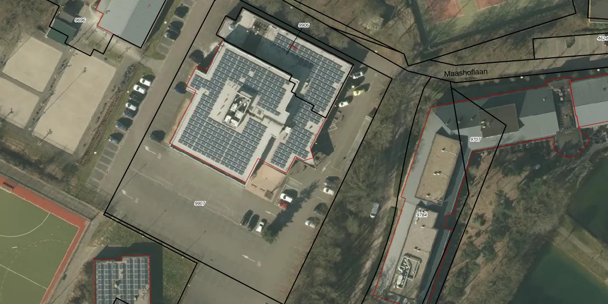 Maashoflaan 5 is gelegen op kadastraal perceel VLO00K9907. Deze kadastrale aanduiding is uniek en wordt gebruikt door het Kadaster om eigendomsrechten en andere zakelijke rechten vast te leggen. Het perceel maakt onderdeel uit van de kadastrale gemeente Venlo.