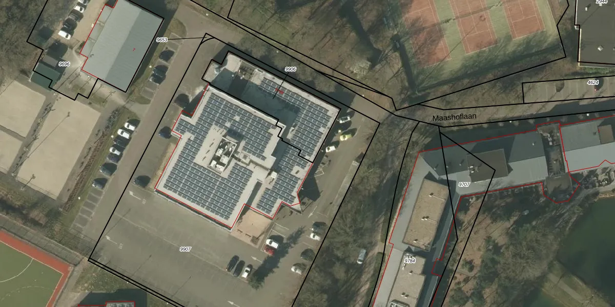 Maashoflaan 5-B is gelegen op kadastraal perceel VLO00K9906. Deze kadastrale aanduiding is uniek en wordt gebruikt door het Kadaster om eigendomsrechten en andere zakelijke rechten vast te leggen. Het perceel maakt onderdeel uit van de kadastrale gemeente Venlo.