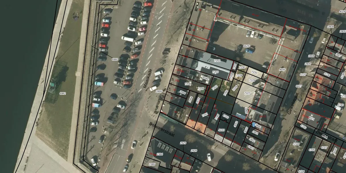 Het perceel waarop Maaskade 32 staat heeft een oppervlakte van 67 m². Dit is een klein perceel. De perceeloppervlakte wordt geregistreerd door het Kadaster. Gedetailleerde informatie over de maten van dit perceel kunt u vinden in het rapport Kadastrale kaart met maatvoering van Maaskade 32.