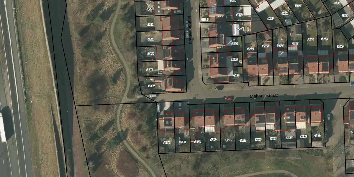 Het perceel waarop Mahoniestraat 31 staat heeft een oppervlakte van 254 m². Dit is een middelgroot perceel. De perceeloppervlakte wordt geregistreerd door het Kadaster. Gedetailleerde informatie over de maten van dit perceel kunt u vinden in het rapport Kadastrale kaart met maatvoering van Mahoniestraat 31.