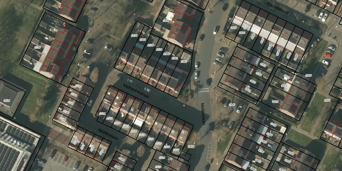 Het perceel waarop Malherbestraat 2 staat heeft een oppervlakte van 222 m². Dit is een middelgroot perceel. De perceeloppervlakte wordt geregistreerd door het Kadaster. Gedetailleerde informatie over de maten van dit perceel kunt u vinden in het rapport Kadastrale kaart met maatvoering van Malherbestraat 2.