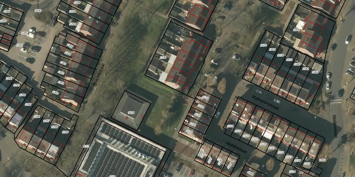 Het perceel waarop Malherbestraat 39 staat heeft een oppervlakte van 900 m². Dit is een groot perceel. De perceeloppervlakte wordt geregistreerd door het Kadaster. Gedetailleerde informatie over de maten van dit perceel kunt u vinden in het rapport Kadastrale kaart met maatvoering van Malherbestraat 39.