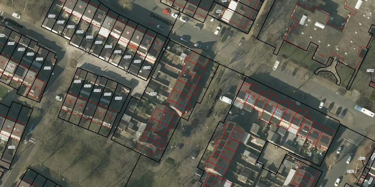 Het perceel waarop Malherbestraat 75 staat heeft een oppervlakte van 1755 m². Dit is een zeer groot perceel. De perceeloppervlakte wordt geregistreerd door het Kadaster. Gedetailleerde informatie over de maten van dit perceel kunt u vinden in het rapport Kadastrale kaart met maatvoering van Malherbestraat 75.