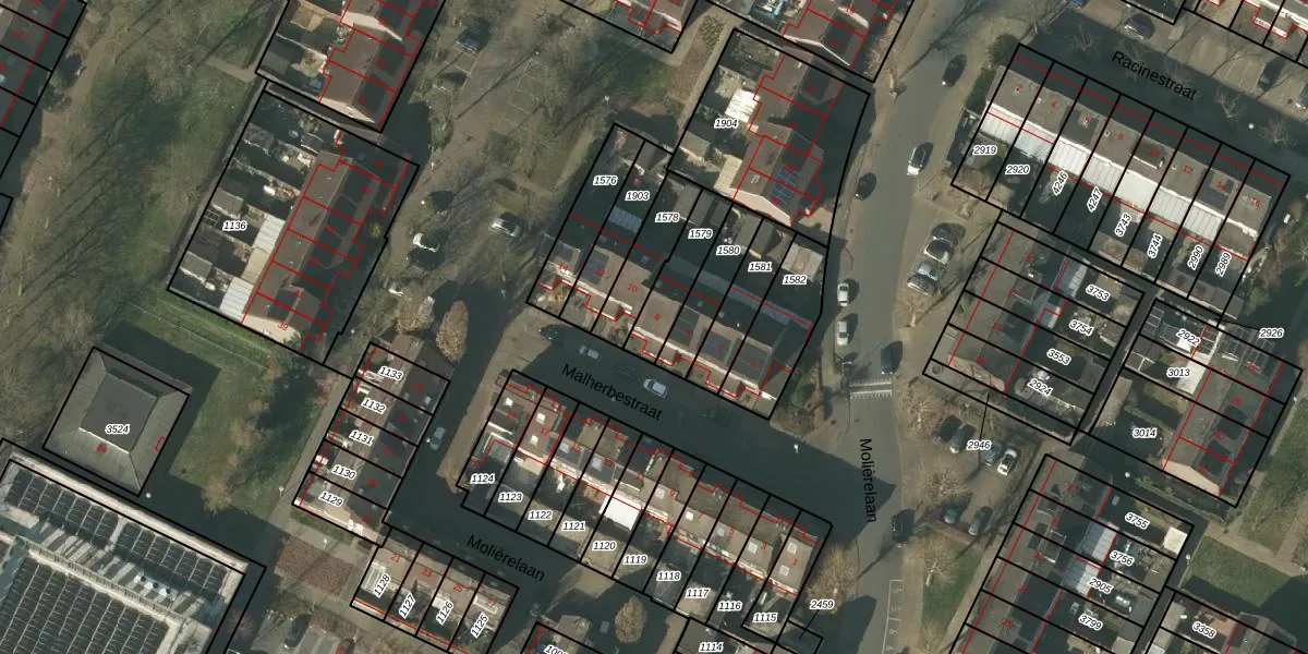 Gebruik de zoekbalk of klik op een perceel voor informatie over de adressen binnen dit perceel.