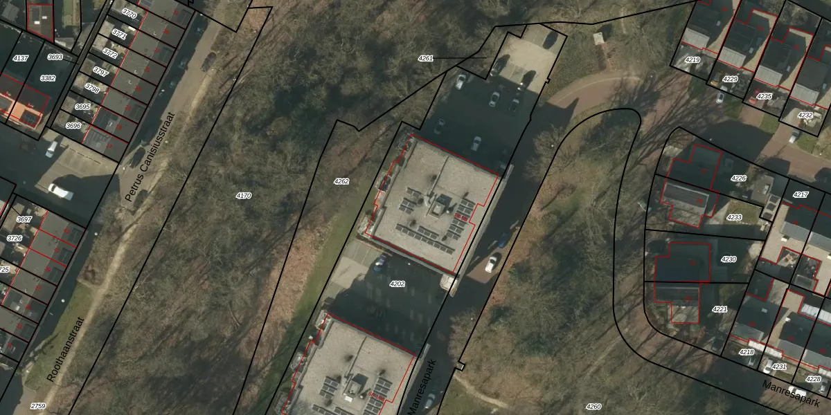 Manresapark 40 is gelegen op kadastraal perceel VLO00F4202. Deze kadastrale aanduiding is uniek en wordt gebruikt door het Kadaster om eigendomsrechten en andere zakelijke rechten vast te leggen. Het perceel maakt onderdeel uit van de kadastrale gemeente Venlo.