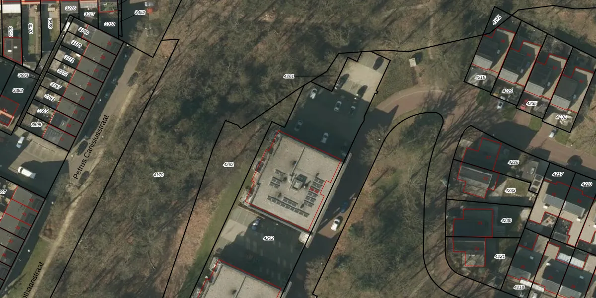 Het perceel waarop het adres ligt is VLO00-F-4202. De afkorting 'VLO00' staat voor kadastrale gemeente Venlo. De oppervlakte van het perceel is 3385 m². Dat is groter dan gemiddeld in Venlo, waar de gemiddelde perceeloppervlakte op 1971,31 m² ligt. De grootste perceeloppervlakte in de kadastrale gemeente is 82,6 ha. De kleinste oppervlakte bedraagt 0 m². Op het perceel zijn 42 adressen aanwezig. In de Basisregistratie Kadaster (BRK) werden de grenzen van het perceel geregistreerd op 06-05-2022.