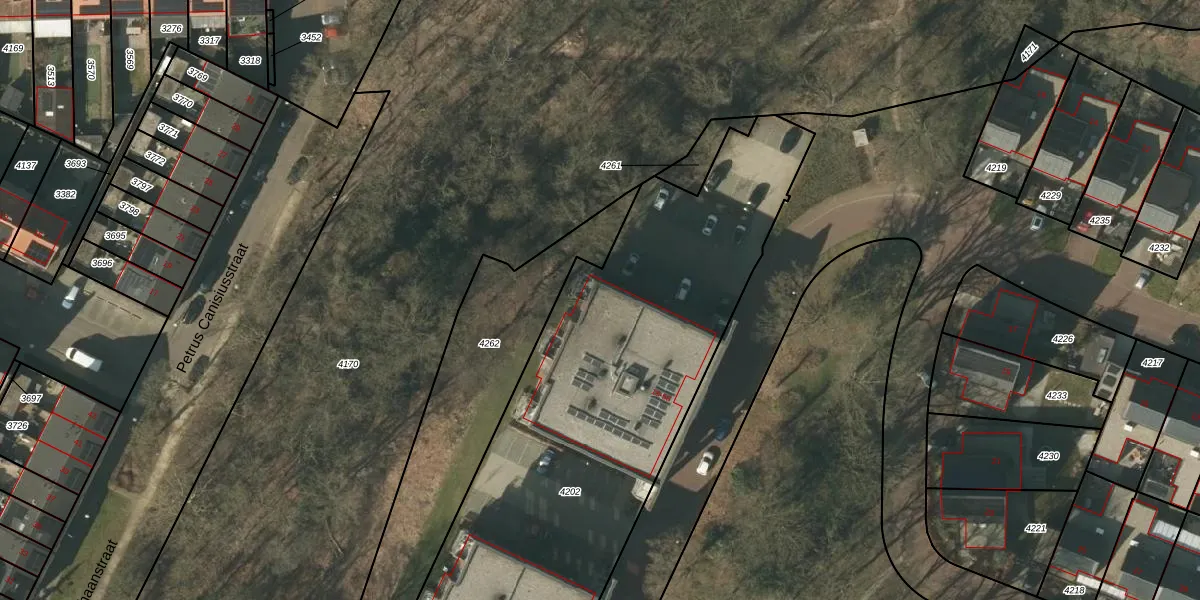 Het perceel waarop het adres ligt is VLO00-F-4202. De afkorting 'VLO00' staat voor kadastrale gemeente Venlo. De oppervlakte van het perceel is 3385 m². Dat is groter dan gemiddeld in Venlo, waar de gemiddelde perceeloppervlakte op 1969,8 m² ligt. Het grootste perceel in de kadastrale gemeente is 82,6 ha. Het kleinste perceel heeft een oppervlakte van 0 m². Op het perceel liggen in totaal 42 adressen. De laatste wijziging in het de Basisregistratie Kadaster (BRK) was op 06-05-2022.