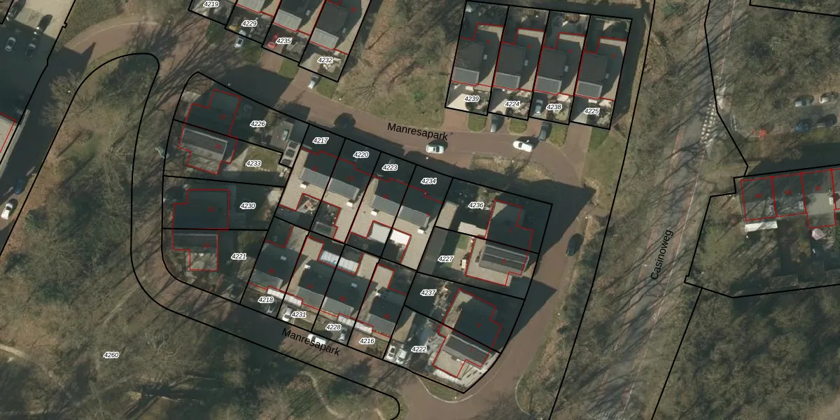 Manresapark 9 is gelegen op kadastraal perceel VLO00F4234. Deze kadastrale aanduiding is uniek en wordt gebruikt door het Kadaster om eigendomsrechten en andere zakelijke rechten vast te leggen. Het perceel maakt onderdeel uit van de kadastrale gemeente Venlo.