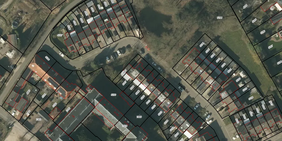 Het perceel waarop Mariadal 29 staat heeft een oppervlakte van 195 m². Dit is een middelgroot perceel. De perceeloppervlakte wordt geregistreerd door het Kadaster. Gedetailleerde informatie over de maten van dit perceel kunt u vinden in het rapport Kadastrale kaart met maatvoering van Mariadal 29.