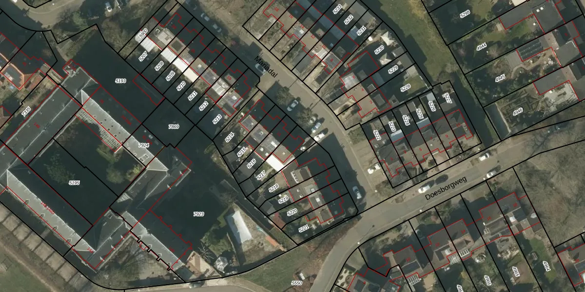 Het perceel waarop Mariadal 9 staat heeft een oppervlakte van 190 m². Dit is een middelgroot perceel. De perceeloppervlakte wordt geregistreerd door het Kadaster. Gedetailleerde informatie over de maten van dit perceel kunt u vinden in het rapport Kadastrale kaart met maatvoering van Mariadal 9.