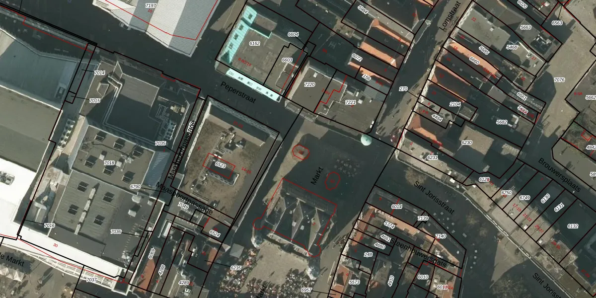 Het perceel waarop Markt 11 staat heeft een oppervlakte van 3070 m². Dit is een zeer groot perceel. De perceeloppervlakte wordt geregistreerd door het Kadaster. Gedetailleerde informatie over de maten van dit perceel kunt u vinden in het rapport Kadastrale kaart met maatvoering van Markt 11.