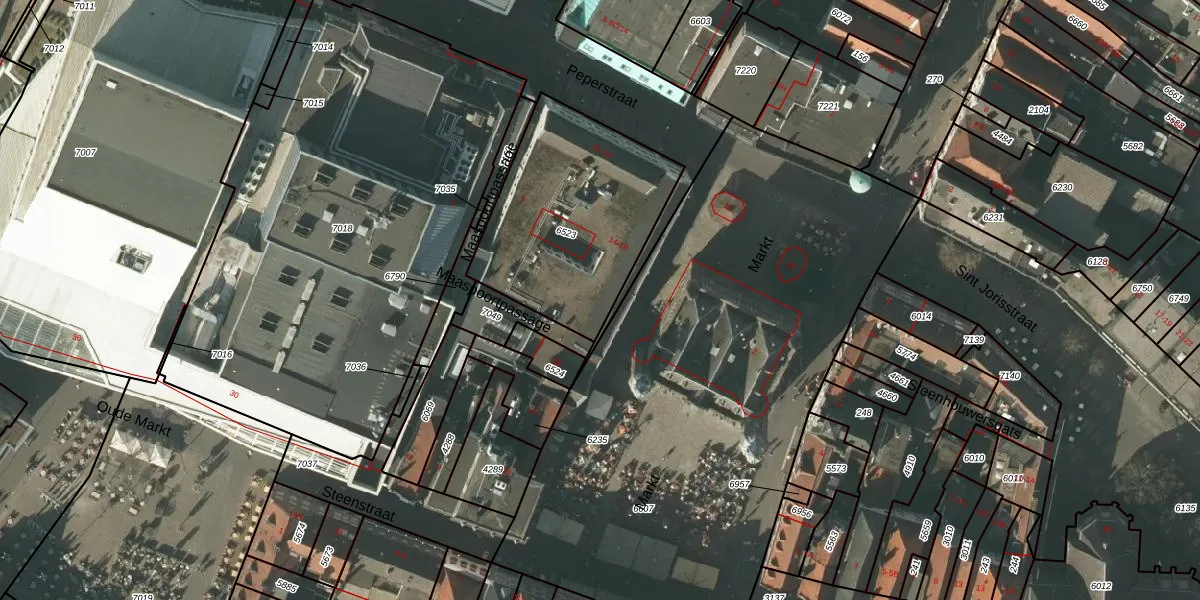 Het perceel waarop Markt 19 staat heeft een oppervlakte van 841 m². Dit is een groot perceel. De perceeloppervlakte wordt geregistreerd door het Kadaster. Gedetailleerde informatie over de maten van dit perceel kunt u vinden in het rapport Kadastrale kaart met maatvoering van Markt 19.