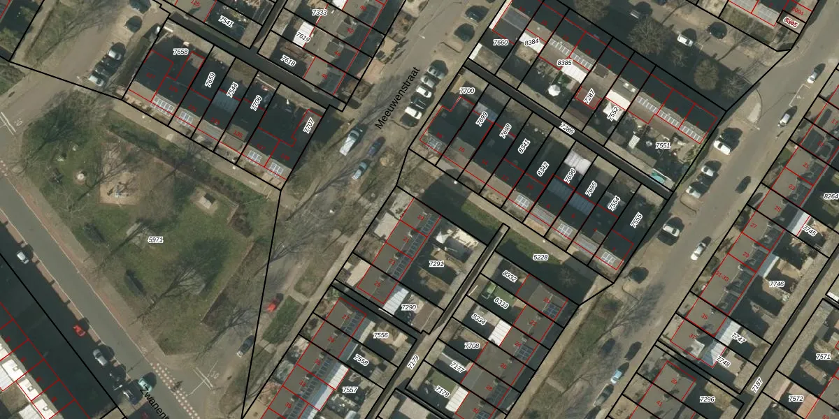 Het perceel waarop Meeuwenstraat 19 staat heeft een oppervlakte van 491 m². Dit is een groot perceel. De perceeloppervlakte wordt geregistreerd door het Kadaster. Gedetailleerde informatie over de maten van dit perceel kunt u vinden in het rapport Kadastrale kaart met maatvoering van Meeuwenstraat 19.