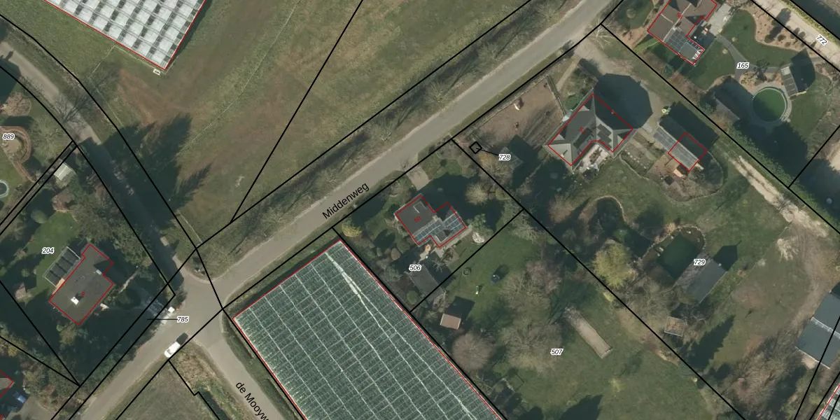 Middenweg 50 is gelegen op kadastraal perceel VLO00U506. Deze kadastrale aanduiding is uniek en wordt gebruikt door het Kadaster om eigendomsrechten en andere zakelijke rechten vast te leggen. Het perceel maakt onderdeel uit van de kadastrale gemeente Venlo.