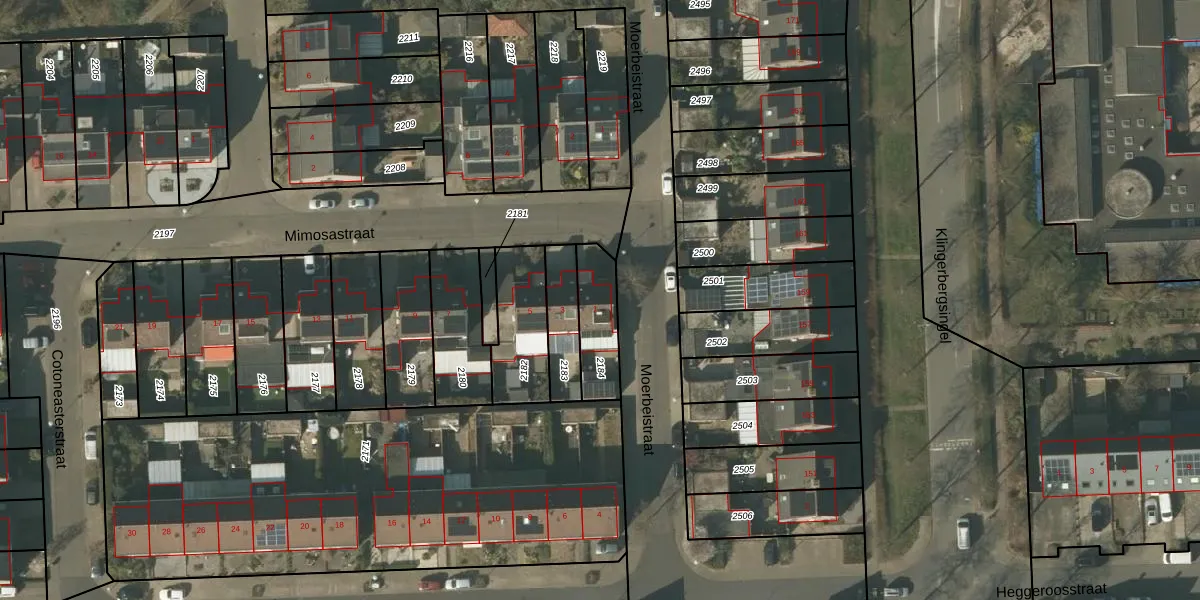 Het perceel waarop Mimosastraat 1 staat heeft een oppervlakte van 165 m². Dit is een middelgroot perceel. De perceeloppervlakte wordt geregistreerd door het Kadaster. Gedetailleerde informatie over de maten van dit perceel kunt u vinden in het rapport Kadastrale kaart met maatvoering van Mimosastraat 1.