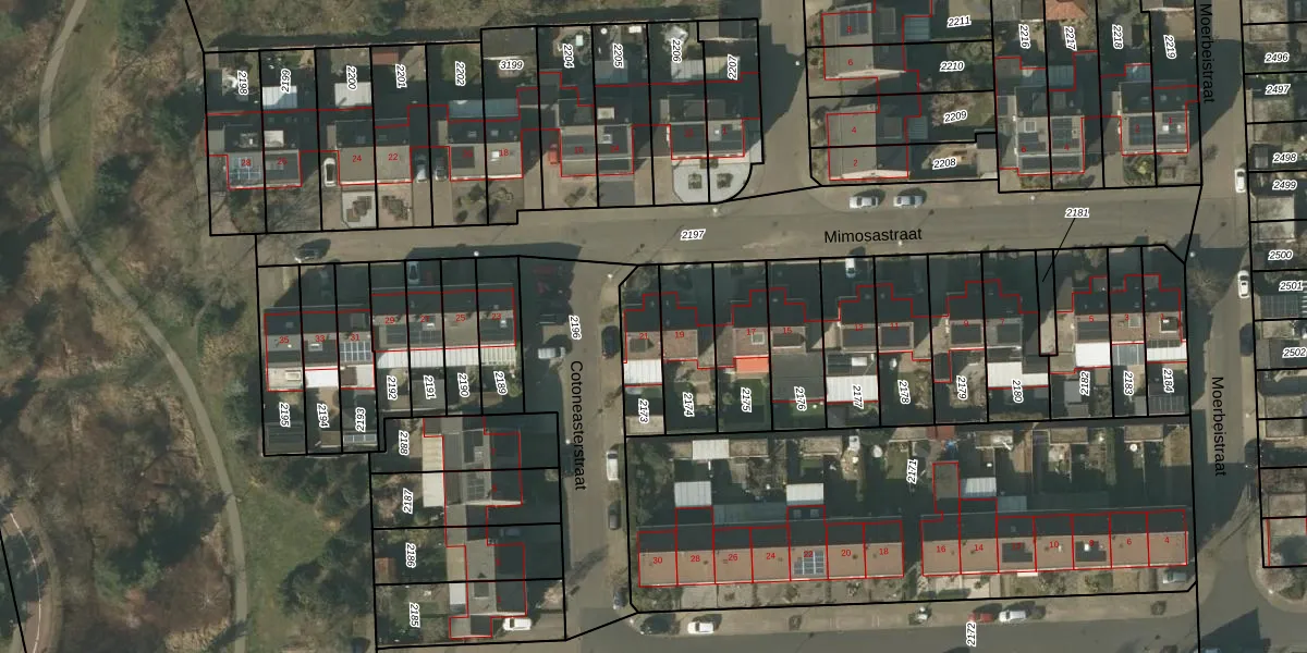 Het perceel waarop Mimosastraat 21 staat heeft een oppervlakte van 156 m². Dit is een middelgroot perceel. De perceeloppervlakte wordt geregistreerd door het Kadaster. Gedetailleerde informatie over de maten van dit perceel kunt u vinden in het rapport Kadastrale kaart met maatvoering van Mimosastraat 21.