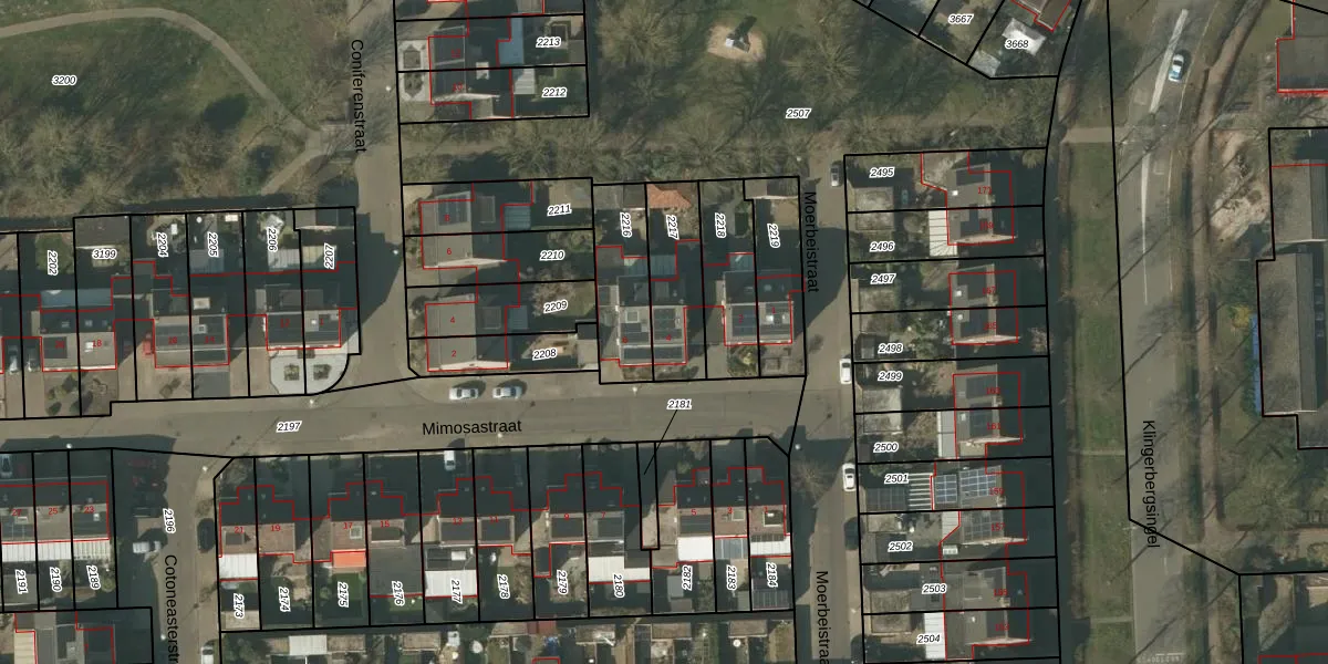 Gebruik de zoekbalk of klik op een perceel voor informatie over de adressen binnen dit perceel.