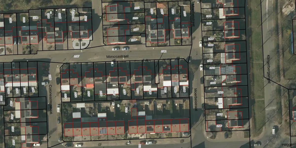 Mimosastraat 7 is gelegen op kadastraal perceel VLO00N2180. Deze kadastrale aanduiding is uniek en wordt gebruikt door het Kadaster om eigendomsrechten en andere zakelijke rechten vast te leggen. Het perceel maakt onderdeel uit van de kadastrale gemeente Venlo.