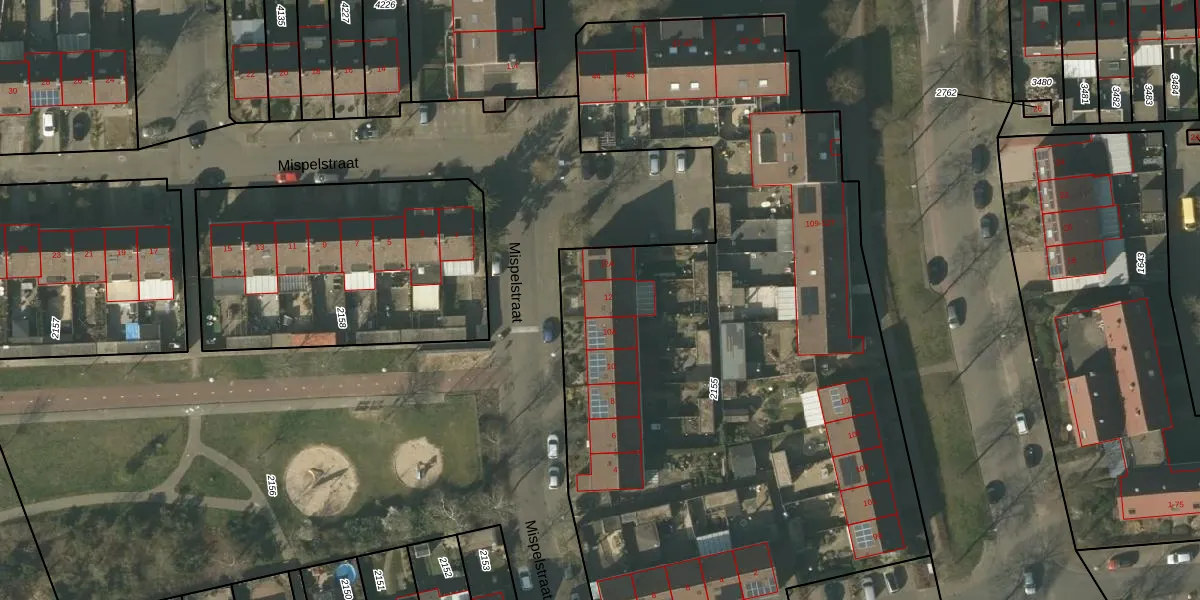 Mispelstraat 12 is gelegen op kadastraal perceel VLO00N2155. Deze kadastrale aanduiding is uniek en wordt gebruikt door het Kadaster om eigendomsrechten en andere zakelijke rechten vast te leggen. Het perceel maakt onderdeel uit van de kadastrale gemeente Venlo.
