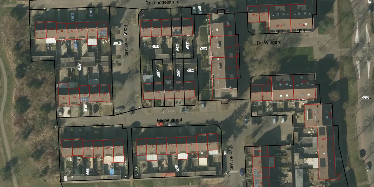 Mispelstraat 14 is gelegen op kadastraal perceel VLO00N4226. Deze kadastrale aanduiding is uniek en wordt gebruikt door het Kadaster om eigendomsrechten en andere zakelijke rechten vast te leggen. Het perceel maakt onderdeel uit van de kadastrale gemeente Venlo.