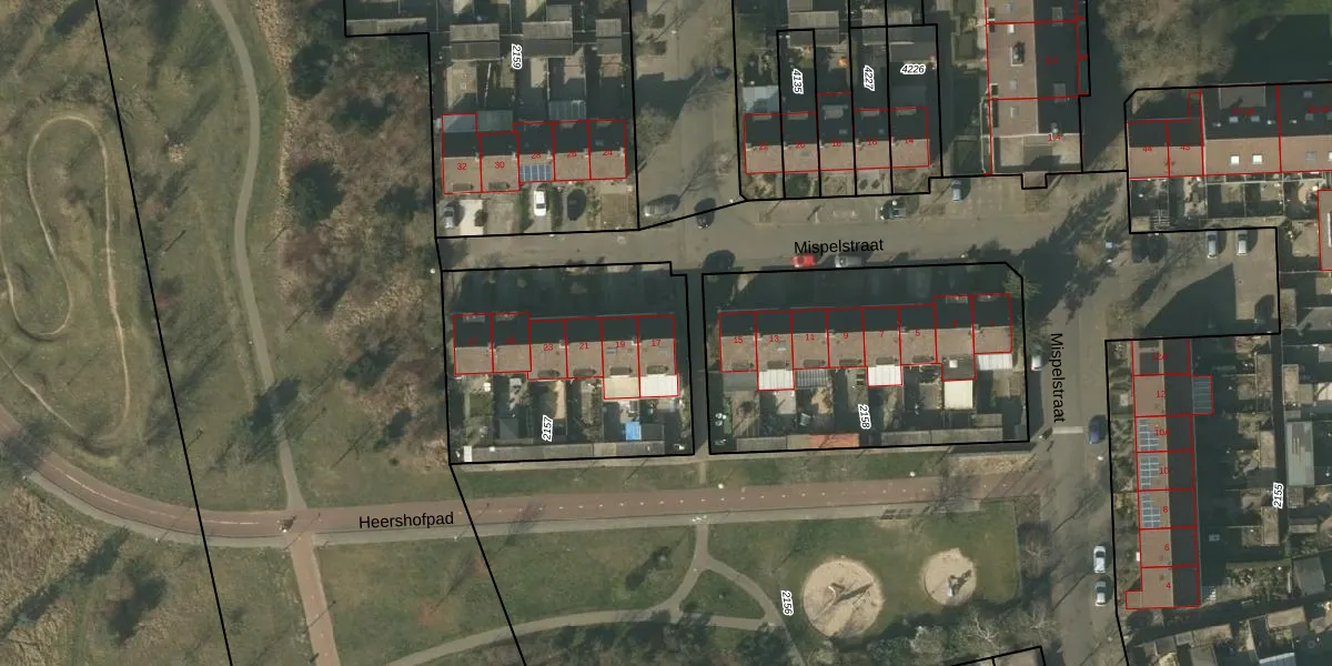 Mispelstraat 17 is gelegen op kadastraal perceel VLO00N2157. Deze kadastrale aanduiding is uniek en wordt gebruikt door het Kadaster om eigendomsrechten en andere zakelijke rechten vast te leggen. Het perceel maakt onderdeel uit van de kadastrale gemeente Venlo.