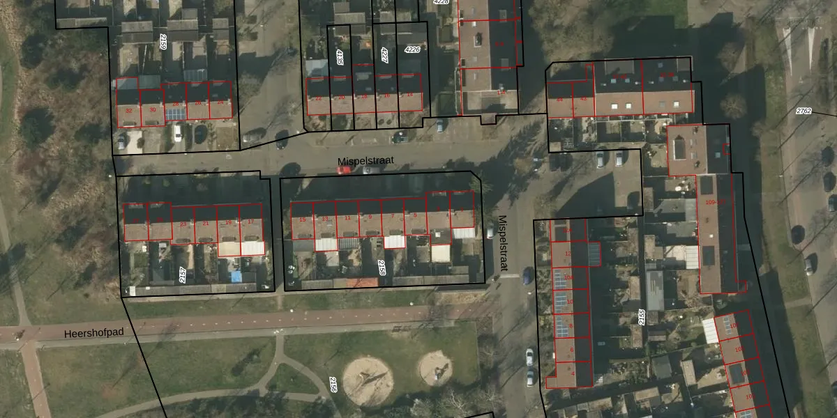 Mispelstraat 5 is gelegen op kadastraal perceel VLO00N2158. Deze kadastrale aanduiding is uniek en wordt gebruikt door het Kadaster om eigendomsrechten en andere zakelijke rechten vast te leggen. Het perceel maakt onderdeel uit van de kadastrale gemeente Venlo.