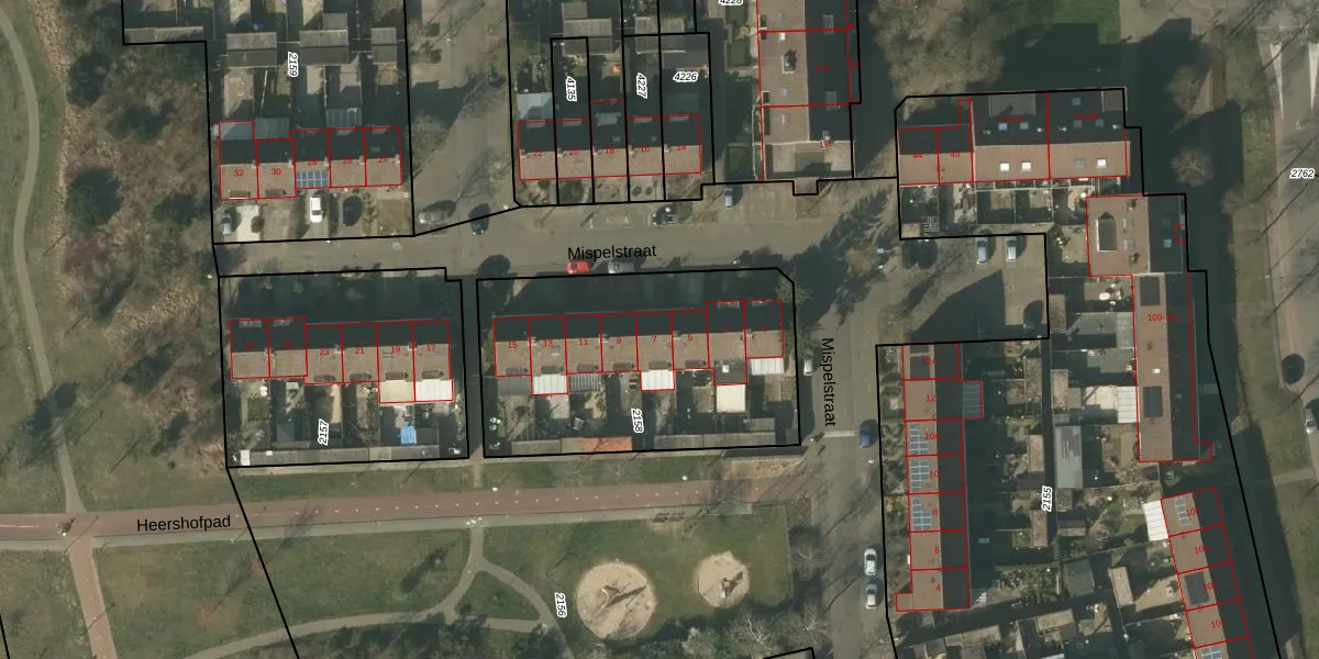Mispelstraat 7 is gelegen op kadastraal perceel VLO00N2158. Deze kadastrale aanduiding is uniek en wordt gebruikt door het Kadaster om eigendomsrechten en andere zakelijke rechten vast te leggen. Het perceel maakt onderdeel uit van de kadastrale gemeente Venlo.