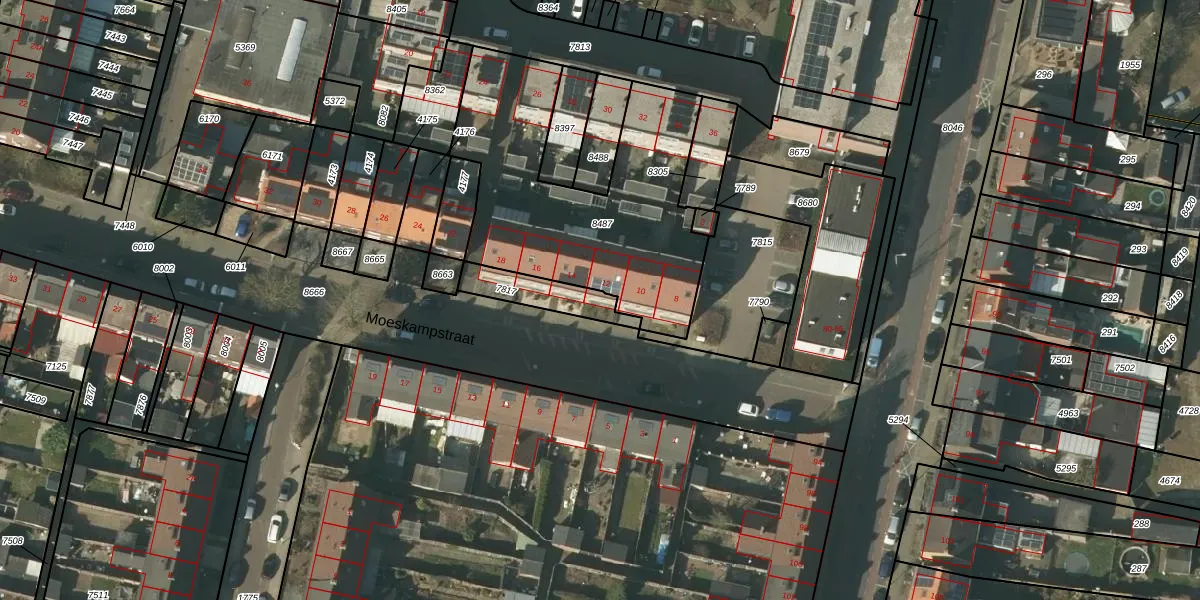 Het perceel waarop Moeskampstraat 12 staat heeft een oppervlakte van 140 m². Dit is een middelgroot perceel. De perceeloppervlakte wordt geregistreerd door het Kadaster. Gedetailleerde informatie over de maten van dit perceel kunt u vinden in het rapport Kadastrale kaart met maatvoering van Moeskampstraat 12.