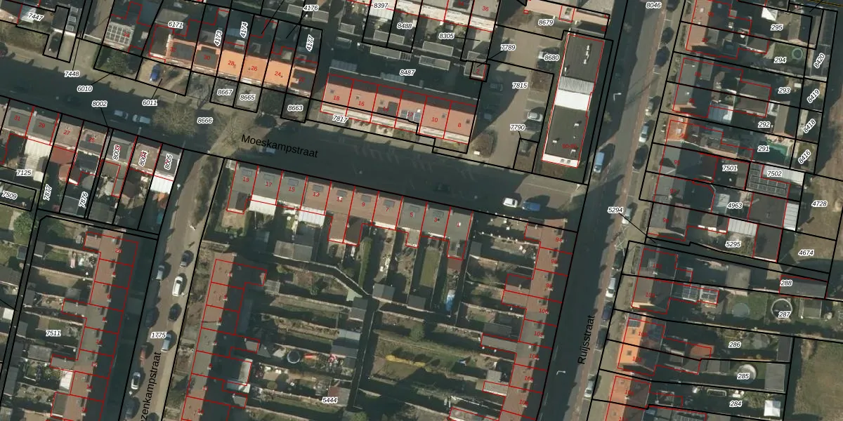 Het perceel waarop Moeskampstraat 5 staat heeft een oppervlakte van 7768 m². Dit is een zeer groot perceel. De perceeloppervlakte wordt geregistreerd door het Kadaster. Gedetailleerde informatie over de maten van dit perceel kunt u vinden in het rapport Kadastrale kaart met maatvoering van Moeskampstraat 5.