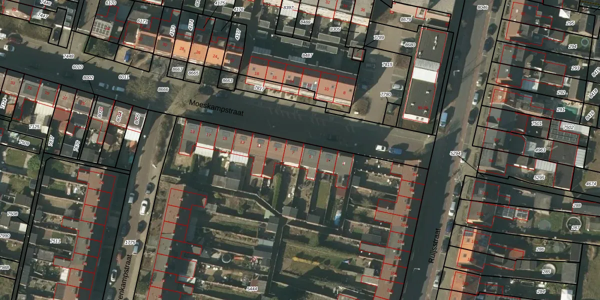 Moeskampstraat 7 is gelegen op kadastraal perceel VLO00M5444. Deze kadastrale aanduiding is uniek en wordt gebruikt door het Kadaster om eigendomsrechten en andere zakelijke rechten vast te leggen. Het perceel maakt onderdeel uit van de kadastrale gemeente Venlo.