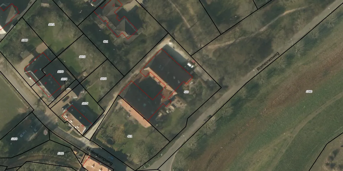 Molenkampweg 10 is gelegen op kadastraal perceel VLO00P510. Deze kadastrale aanduiding is uniek en wordt gebruikt door het Kadaster om eigendomsrechten en andere zakelijke rechten vast te leggen. Het perceel maakt onderdeel uit van de kadastrale gemeente Venlo.