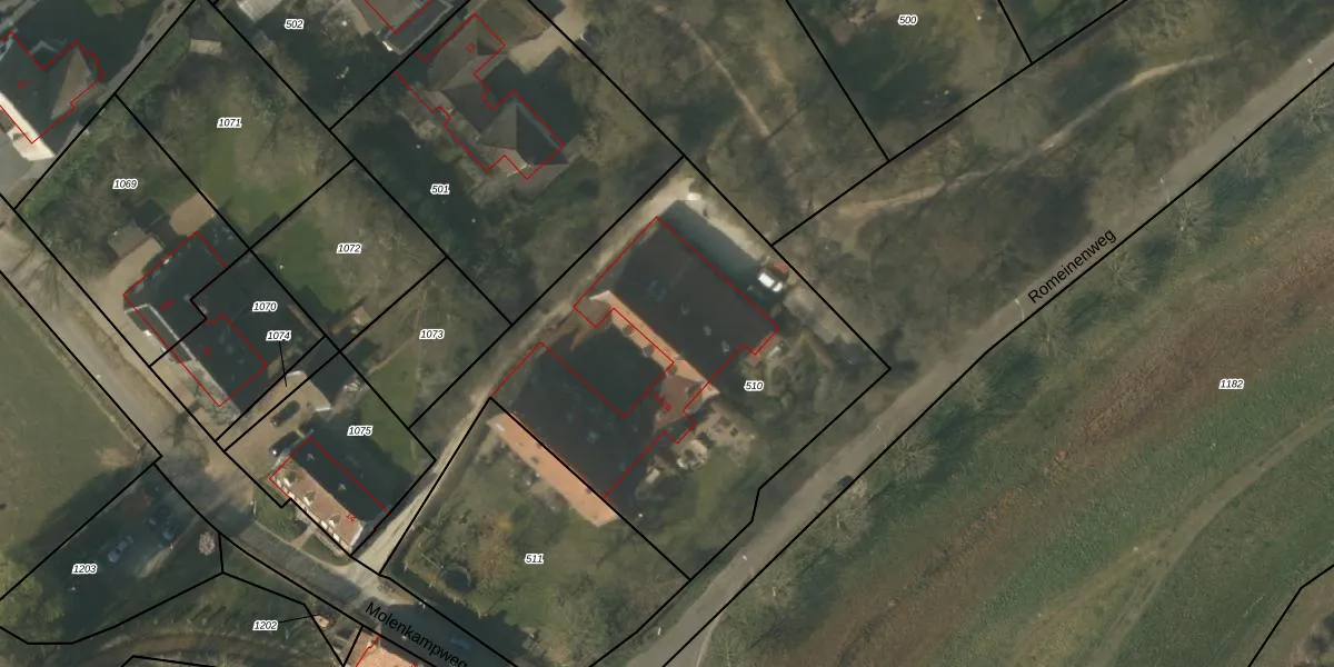 Molenkampweg 12 is gelegen op kadastraal perceel VLO00P510. Deze kadastrale aanduiding is uniek en wordt gebruikt door het Kadaster om eigendomsrechten en andere zakelijke rechten vast te leggen. Het perceel maakt onderdeel uit van de kadastrale gemeente Venlo.