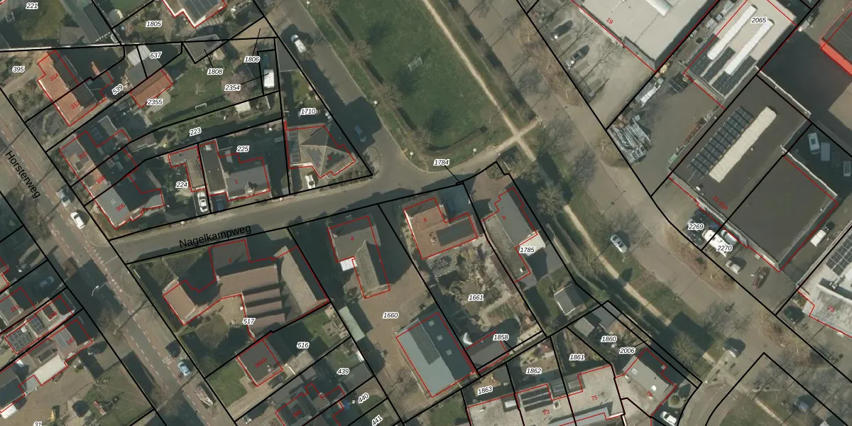 Nagelkampweg 6 is gelegen op kadastraal perceel VLO00O1661. Deze kadastrale aanduiding is uniek en wordt gebruikt door het Kadaster om eigendomsrechten en andere zakelijke rechten vast te leggen. Het perceel maakt onderdeel uit van de kadastrale gemeente Venlo.