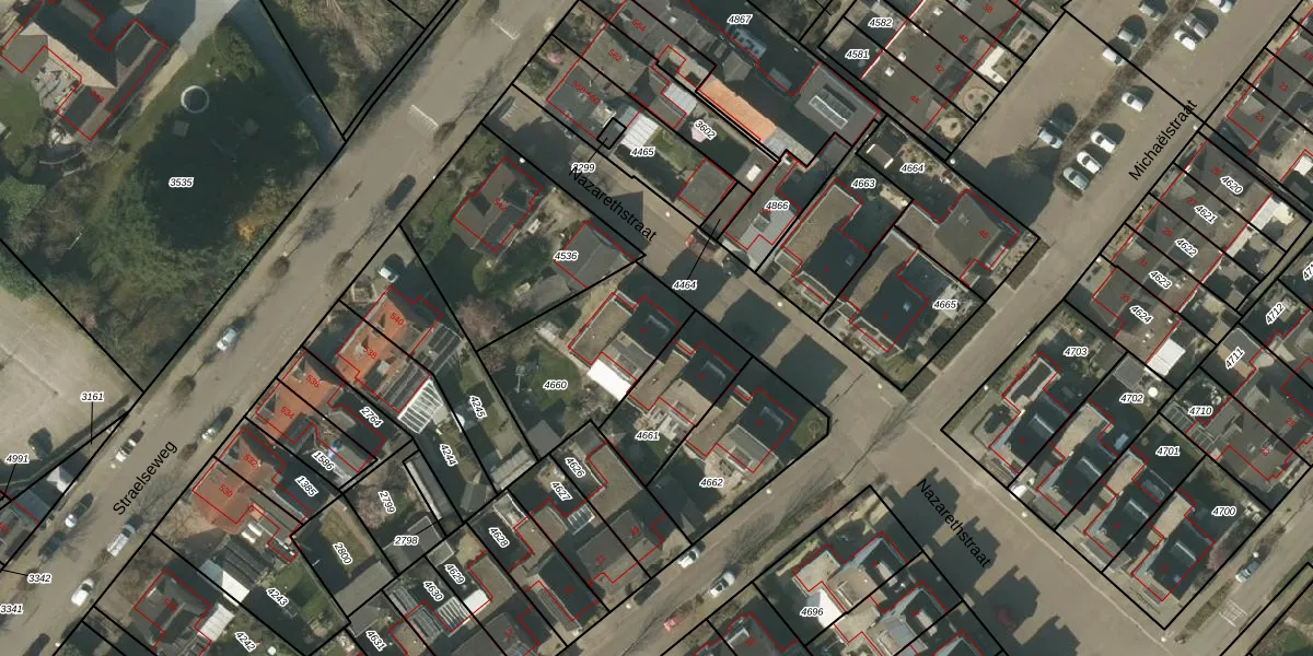 Het perceel waarop Nazarethstraat 2 staat heeft een oppervlakte van 502 m². Dit is een groot perceel. De perceeloppervlakte wordt geregistreerd door het Kadaster. Gedetailleerde informatie over de maten van dit perceel kunt u vinden in het rapport Kadastrale kaart met maatvoering van Nazarethstraat 2.
