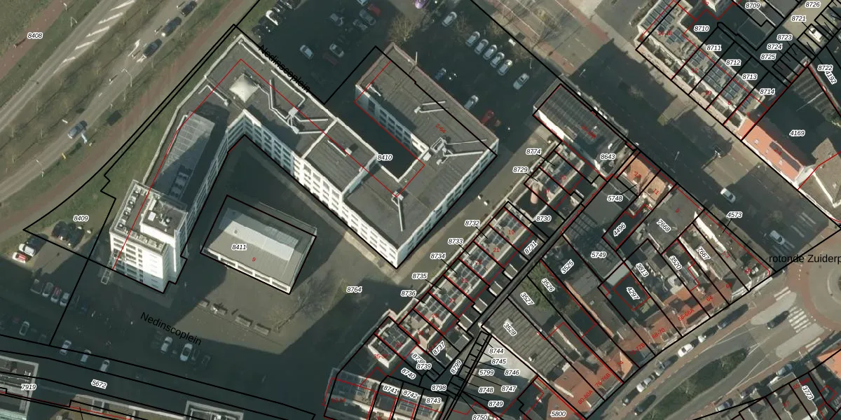 Nedinscoplein 12 is gelegen op kadastraal perceel VLO00H8410. Deze kadastrale aanduiding is uniek en wordt gebruikt door het Kadaster om eigendomsrechten en andere zakelijke rechten vast te leggen. Het perceel maakt onderdeel uit van de kadastrale gemeente Venlo.