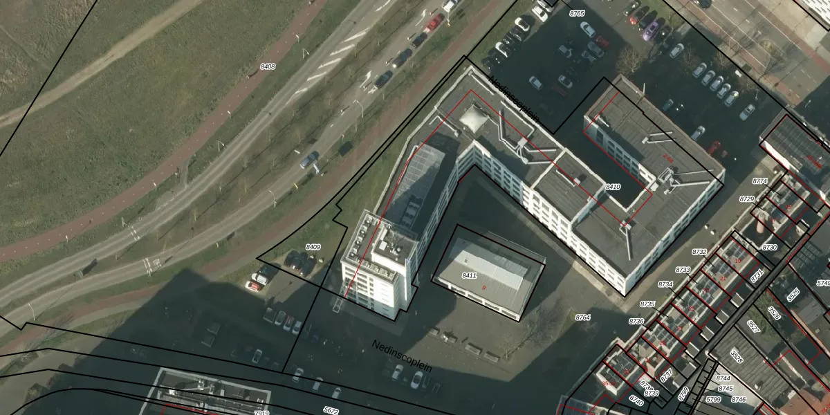 Nedinscoplein 7-C is gelegen op kadastraal perceel VLO00H8410. Deze kadastrale aanduiding is uniek en wordt gebruikt door het Kadaster om eigendomsrechten en andere zakelijke rechten vast te leggen. Het perceel maakt onderdeel uit van de kadastrale gemeente Venlo.