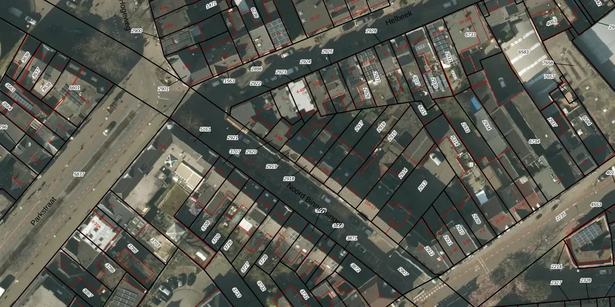 Noord Binnensingel 9-A is gelegen op kadastraal perceel VLO00A2918. Deze kadastrale aanduiding is uniek en wordt gebruikt door het Kadaster om eigendomsrechten en andere zakelijke rechten vast te leggen. Het perceel maakt onderdeel uit van de kadastrale gemeente Venlo.