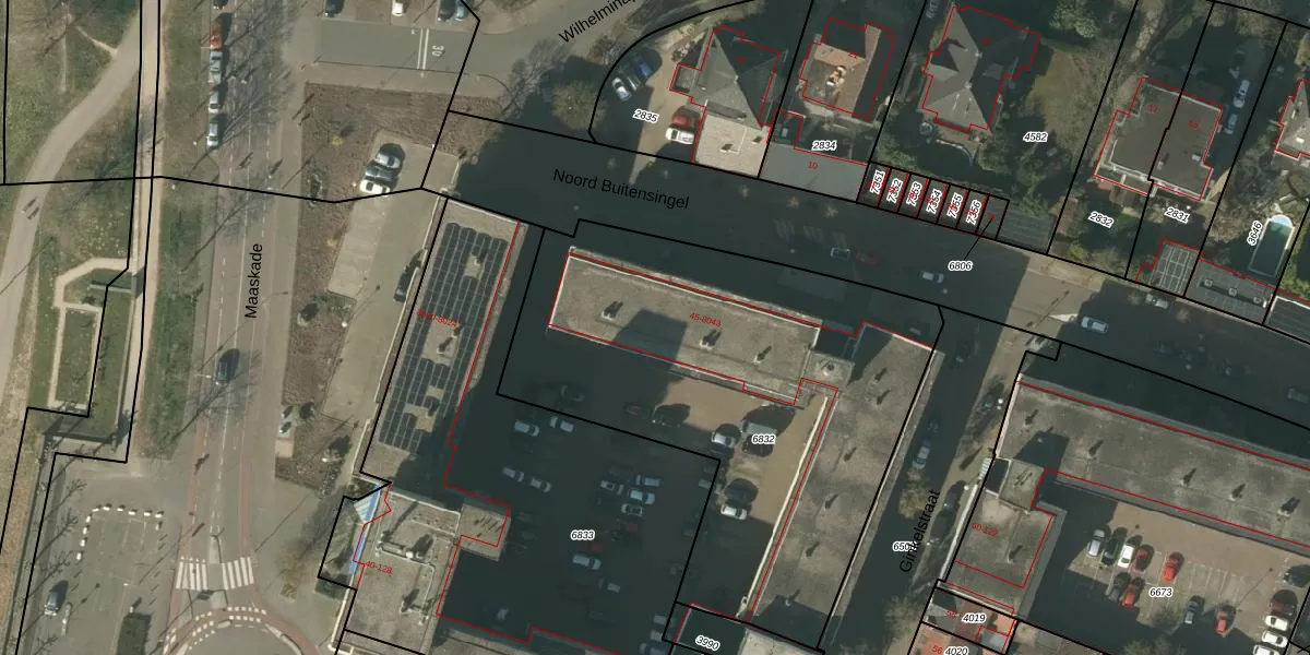 Noord Buitensingel 107 is gelegen op kadastraal perceel VLO00I6832. Deze kadastrale aanduiding is uniek en wordt gebruikt door het Kadaster om eigendomsrechten en andere zakelijke rechten vast te leggen. Het perceel maakt onderdeel uit van de kadastrale gemeente Venlo.