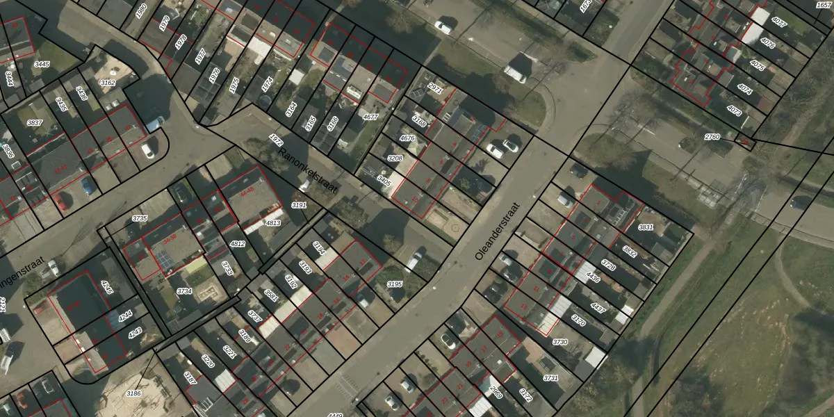 Het perceel waarop Oleanderstraat 10 staat heeft een oppervlakte van 197 m². Dit is een middelgroot perceel. De perceeloppervlakte wordt geregistreerd door het Kadaster. Gedetailleerde informatie over de maten van dit perceel kunt u vinden in het rapport Kadastrale kaart met maatvoering van Oleanderstraat 10.