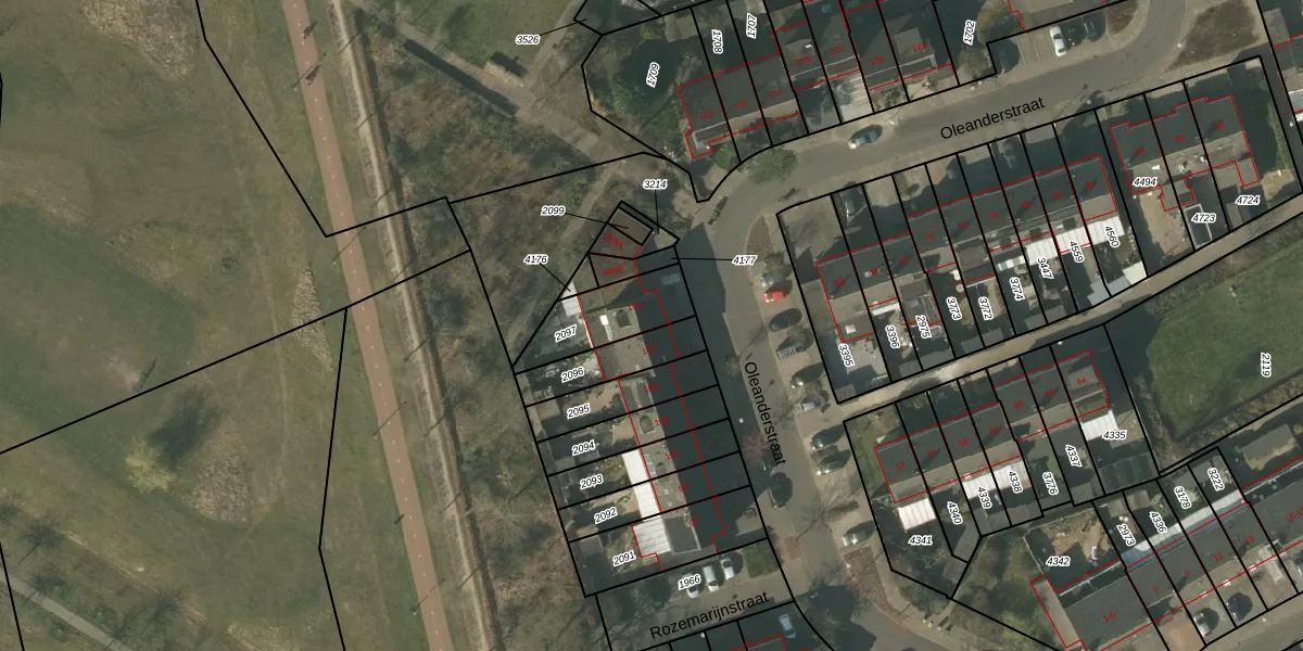 Oleanderstraat 109 is gelegen op kadastraal perceel VLO00N2097. Deze kadastrale aanduiding is uniek en wordt gebruikt door het Kadaster om eigendomsrechten en andere zakelijke rechten vast te leggen. Het perceel maakt onderdeel uit van de kadastrale gemeente Venlo.
