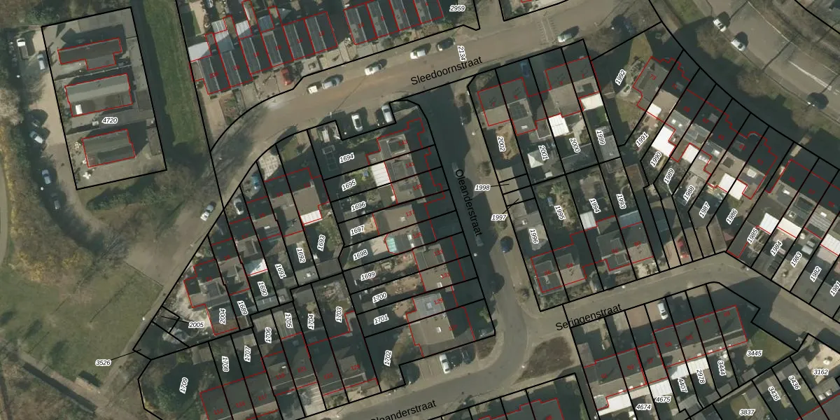 Gebruik de zoekbalk of klik op een perceel voor informatie over de adressen binnen dit perceel.