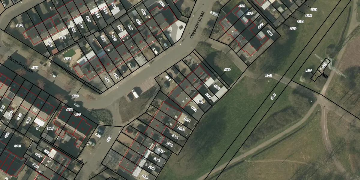 Oleanderstraat 43 is gelegen op kadastraal perceel VLO00N1952. Deze kadastrale aanduiding is uniek en wordt gebruikt door het Kadaster om eigendomsrechten en andere zakelijke rechten vast te leggen. Het perceel maakt onderdeel uit van de kadastrale gemeente Venlo.