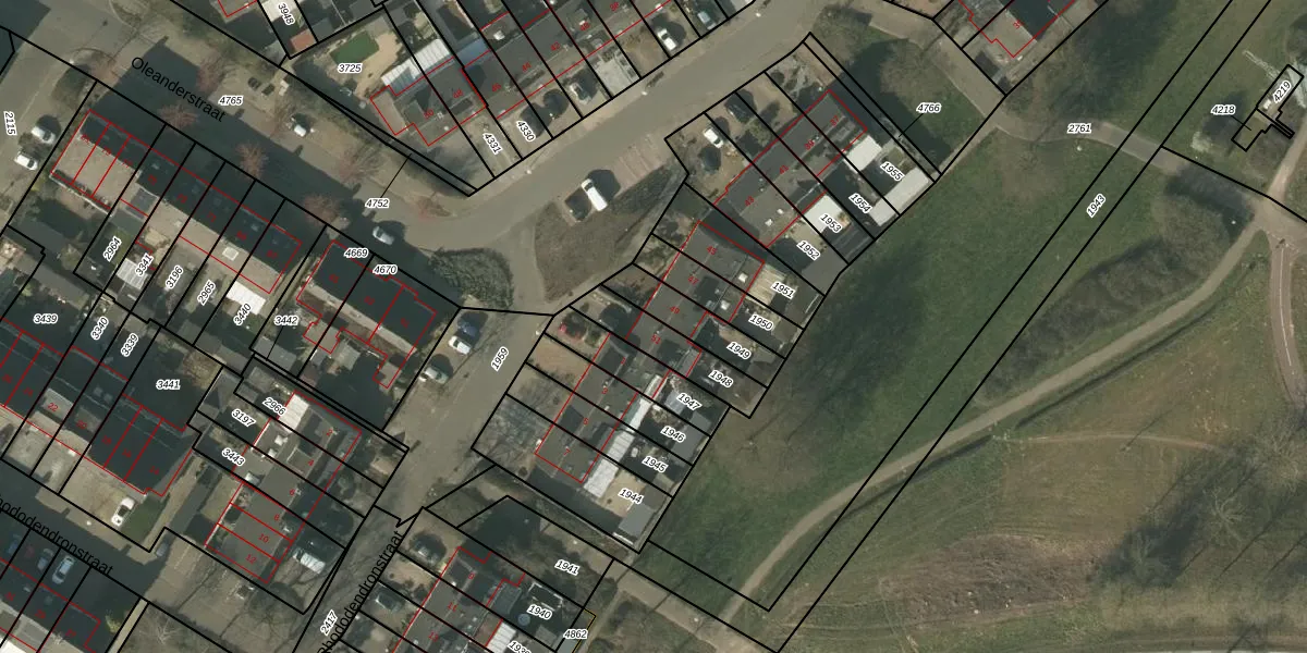 Gebruik de zoekbalk of klik op een perceel voor informatie over de adressen binnen dit perceel.