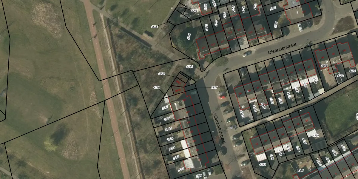 Oleanderstraat 8000 is gelegen op kadastraal perceel VLO00N4177. Deze kadastrale aanduiding is uniek en wordt gebruikt door het Kadaster om eigendomsrechten en andere zakelijke rechten vast te leggen. Het perceel maakt onderdeel uit van de kadastrale gemeente Venlo.