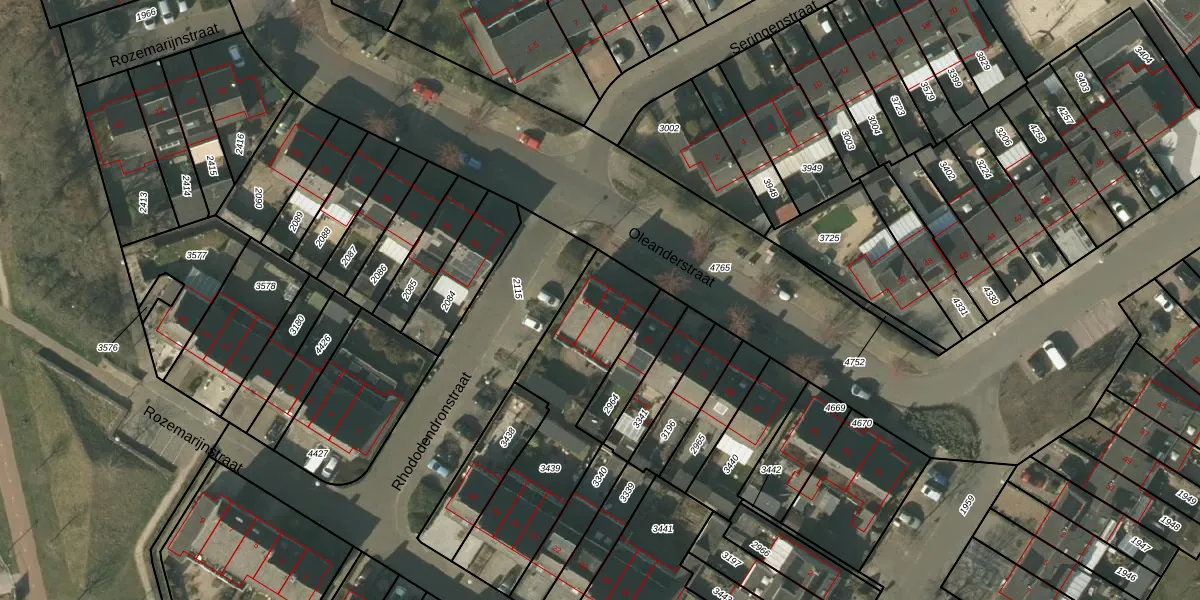 Het perceel waarop Oleanderstraat 81 staat heeft een oppervlakte van 665 m². Dit is een groot perceel. De perceeloppervlakte wordt geregistreerd door het Kadaster. Gedetailleerde informatie over de maten van dit perceel kunt u vinden in het rapport Kadastrale kaart met maatvoering van Oleanderstraat 81.