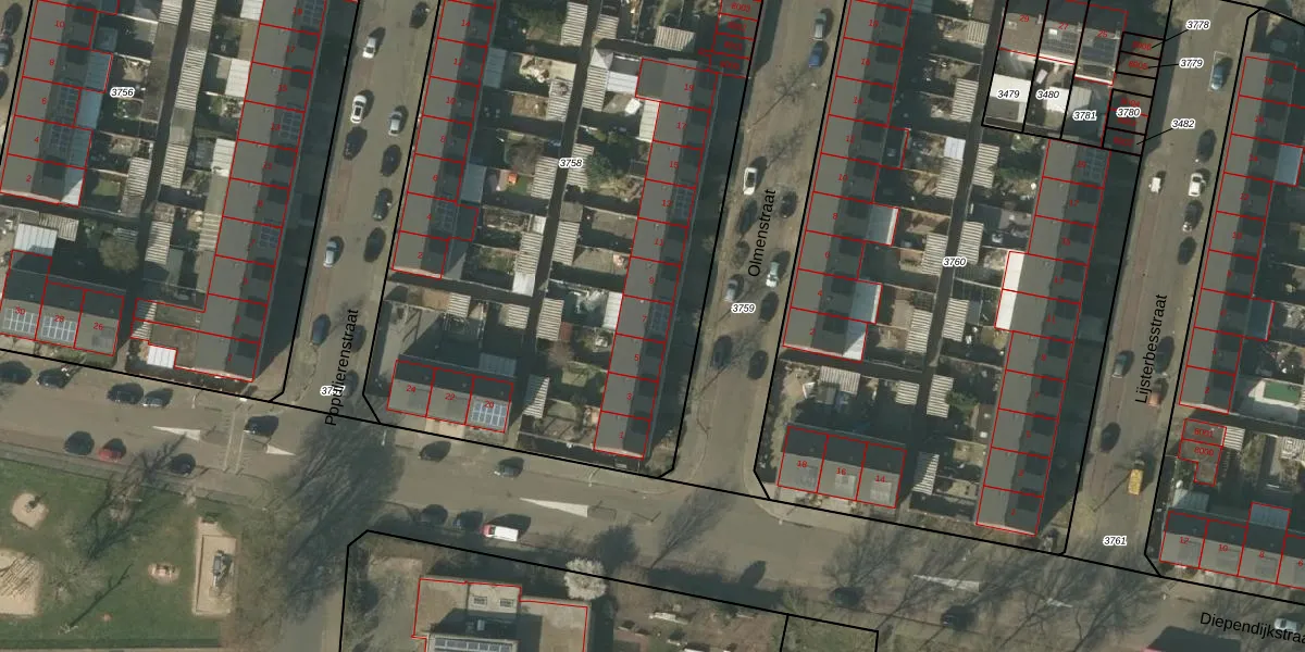 Olmenstraat 7 is gelegen op kadastraal perceel VLO00M3758. Deze kadastrale aanduiding is uniek en wordt gebruikt door het Kadaster om eigendomsrechten en andere zakelijke rechten vast te leggen. Het perceel maakt onderdeel uit van de kadastrale gemeente Venlo.