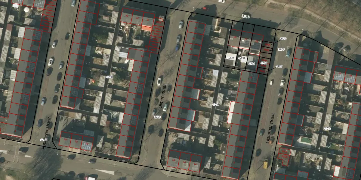 Het perceel waarop Olmenstraat 8 staat heeft een oppervlakte van 3708 m². Dit is een zeer groot perceel. De perceeloppervlakte wordt geregistreerd door het Kadaster. Gedetailleerde informatie over de maten van dit perceel kunt u vinden in het rapport Kadastrale kaart met maatvoering van Olmenstraat 8.