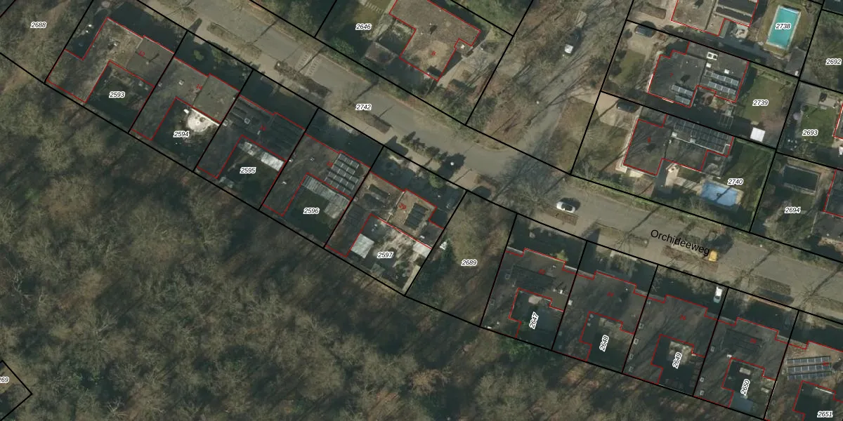 Orchideeweg 20 is gelegen op kadastraal perceel VLO00F2597. Deze kadastrale aanduiding is uniek en wordt gebruikt door het Kadaster om eigendomsrechten en andere zakelijke rechten vast te leggen. Het perceel maakt onderdeel uit van de kadastrale gemeente Venlo.