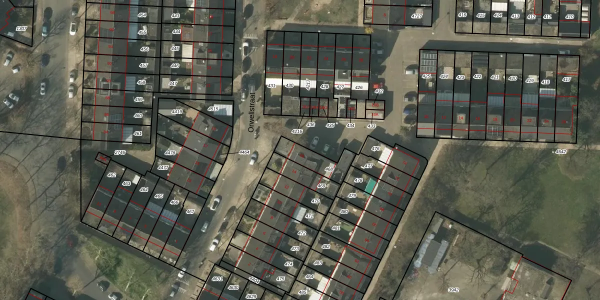 Orwellstraat 16 is gelegen op kadastraal perceel VLO00N468. Deze kadastrale aanduiding is uniek en wordt gebruikt door het Kadaster om eigendomsrechten en andere zakelijke rechten vast te leggen. Het perceel maakt onderdeel uit van de kadastrale gemeente Venlo.